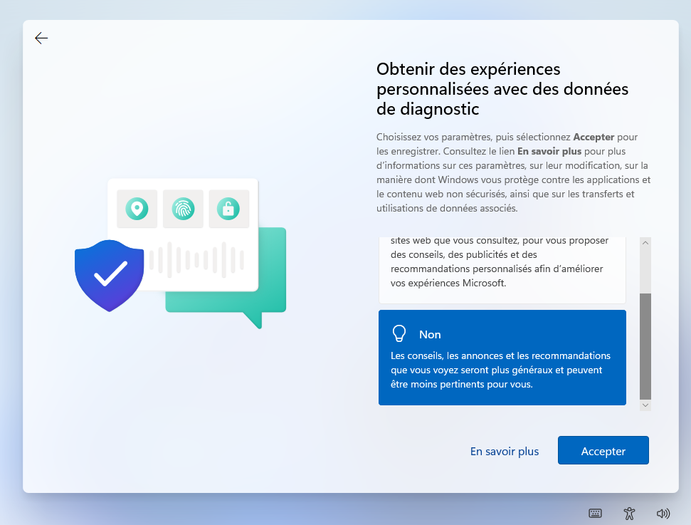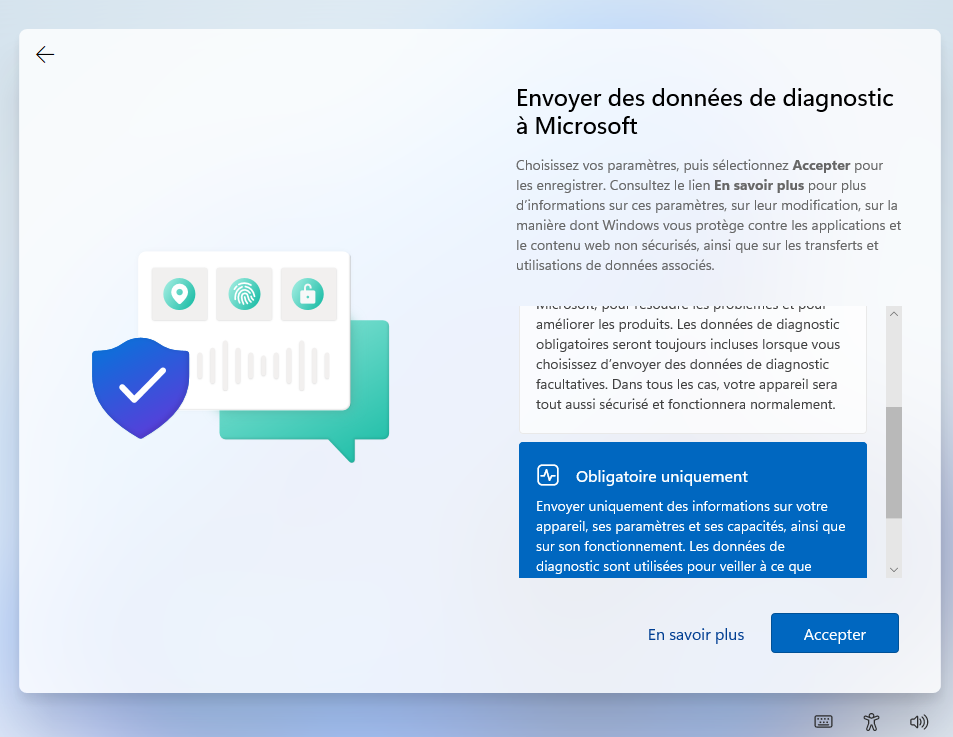 - Ne pas envoyer les informations non-obligatoire et laisser le PC se configurer et démarrer normalement