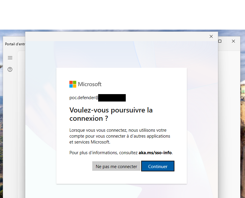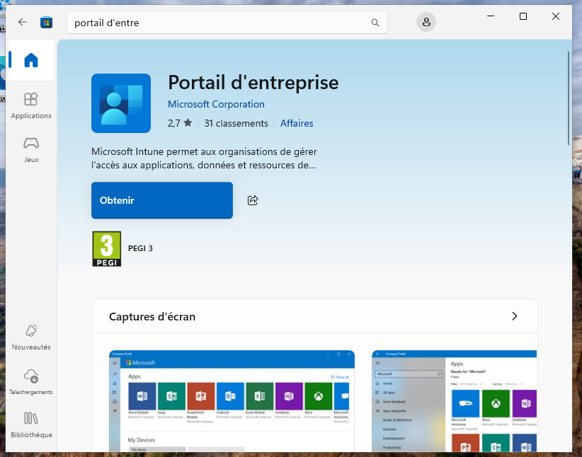 - Installer et démarrer l'application portail d'entreprise sur le Microsoft Store. L'application va demander de se connecter avec le compte Microsoft